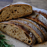 Experience the authentic taste of Germany with our German Farmer Bread! Made with care using a special fermenting and salting process, Rye mixed sourdough that is perfect for anyone who loves the taste of traditional German Farmer bread. Made with a blend of rye and wheat flours and flavoured with a combination of coriander, anise and caraway seeds, this bread has a dense and slightly dense texture that is perfect for sandwiches and toast. Enjoy its rich taste, with hints of roasted flavors and a mild tanginess. It's a classic wood-fired oven bread.