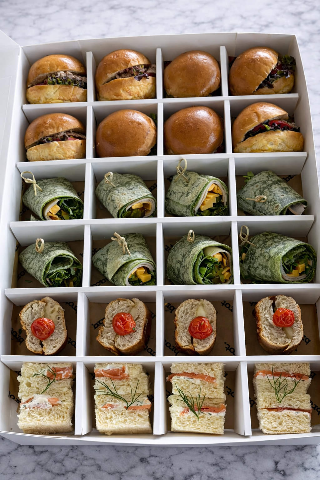 Nice box for breaking fast when you’re on the go. Good quality sandwiches and everything arrived fresh.